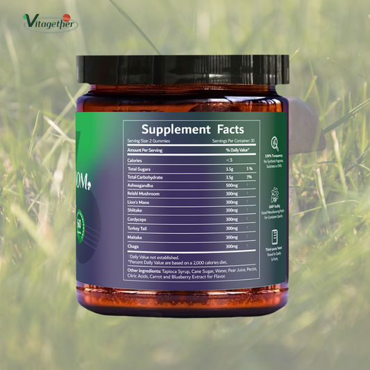 Vitagether Mushroom Gummies - 10x Mushroom Supplement with Ashwagandha and Lions Mane (60 Chews) Nootropic Brain Supplement, Immune Support & Stress Relief-Coke Flavor
