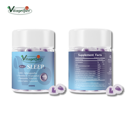 Vitagether Sleep Gummies with 5mg Melatonin, Elderberry, Magnesium, L-Theanine, Chamomile and Lavender, Drug-Free Nighttime Sleep Aid, Gluten Free, Gelatin Free, Non GMO, Berry Flavored (60 Count)