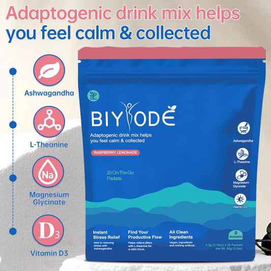 Calming Drink Mix with KSM-66 Ashwagandha, Vitamin D3, Magnesium & L-Theanine – Supports Cortisol Balance, Mood & Sleep, Helps Manage Occasional Stress – Travel Packets (20 Servings)