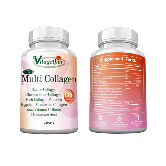 Vitagether Multi Collagen Pills with Hyaluronic Acid + Vitamin C | Hydrolyzed Collagen Supplements for Women or Men | Multi Collagen Capsules Peptides for Skin, Wrinkles, 120 Caps